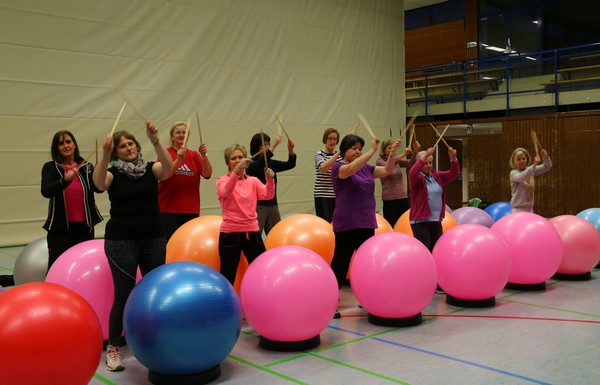 Ein großer Gymnastikball, zwei Trommelstöcke und Musik mit pulsierenden Rhythmen frei nach jedem Geschmack, das sind die Zutaten für den neuesten und zukunftsweisenden Fitness-Sport.